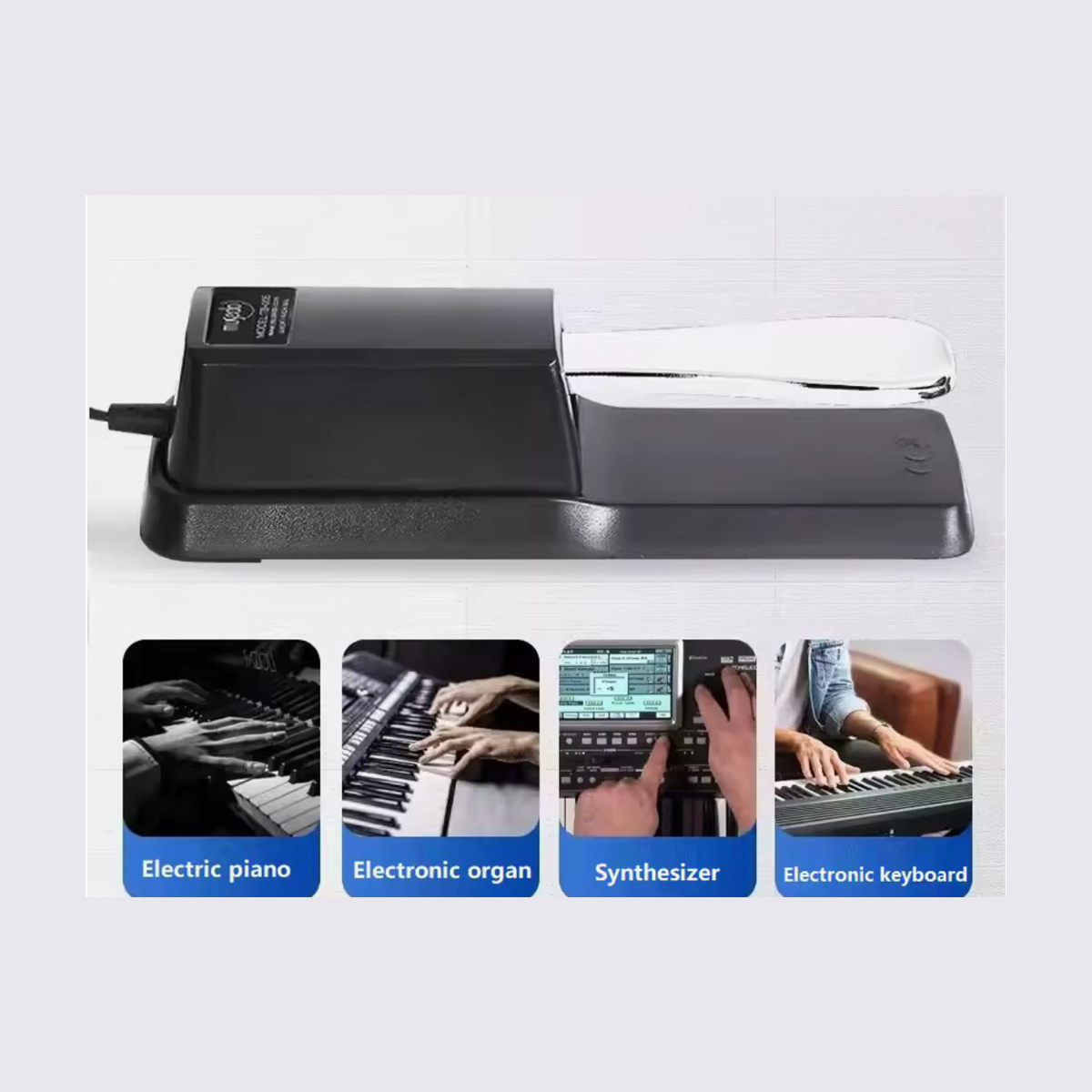 This type of pedal is used to cause the sound to ring out after a finger is lifted. It electronically emulates the pedal on an acoustic piano that holds the damper pads off the strings, so the hammered stringes will continue to ring out after the finger is lifted. This is an essential part of dynamic piano playing as well as modern electronic keyboard performance.