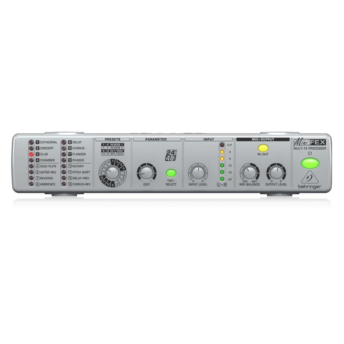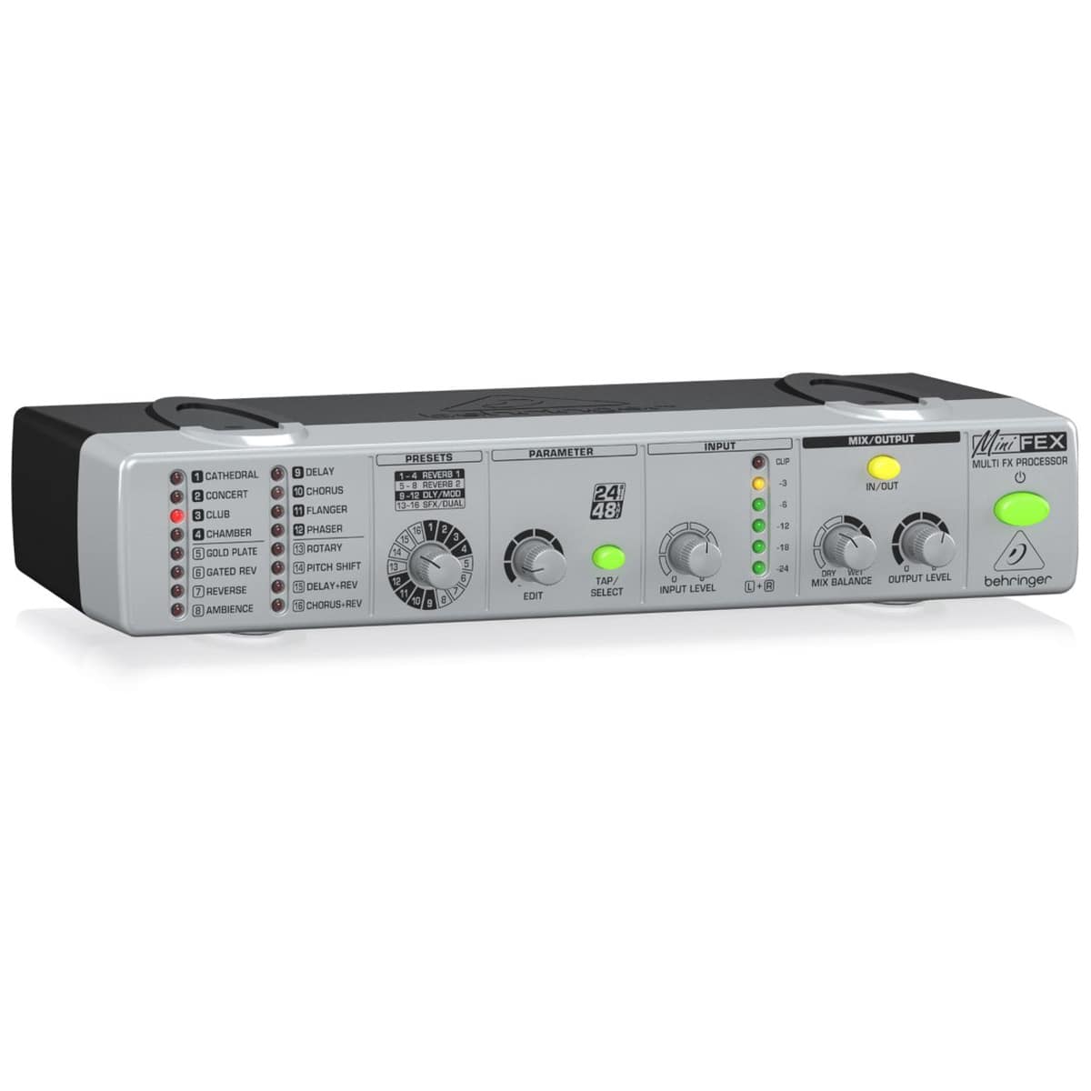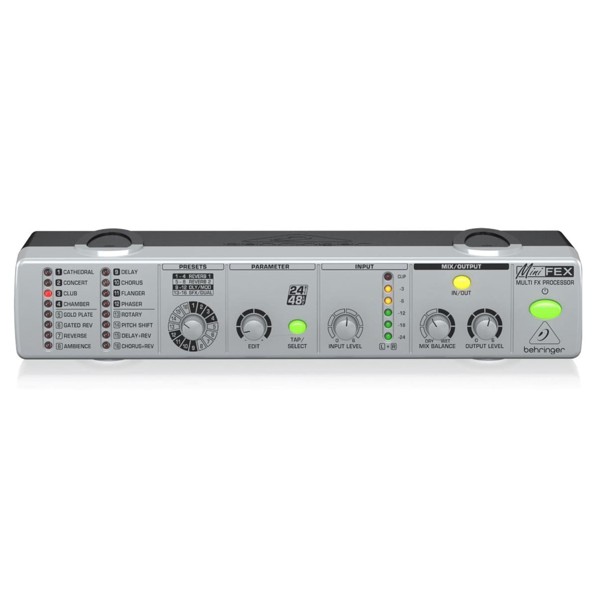 - Intuitive FX Preset control with LEDs indicating the selected program