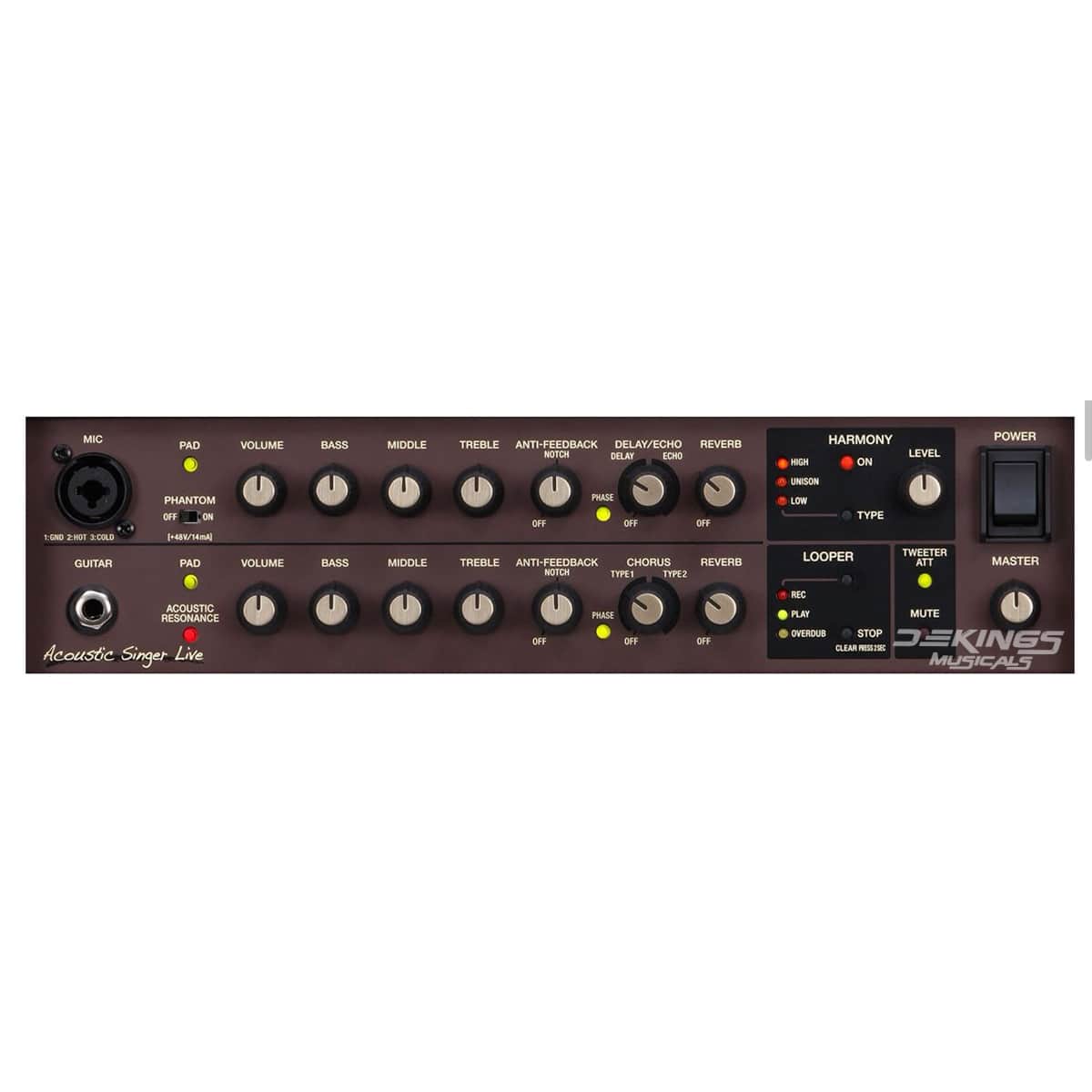 Independent channels are provided for acoustic guitar and vocal, and each is equipped with discrete analog input circuits and three-band EQ for studio-quality sound. And with additional features such as Acoustic Resonance, looping, automatic vocal harmonies, effects, and much more, the Acoustic Singer Live gives acoustic musicians everything they need to deliver inspiring and impactful live performances.