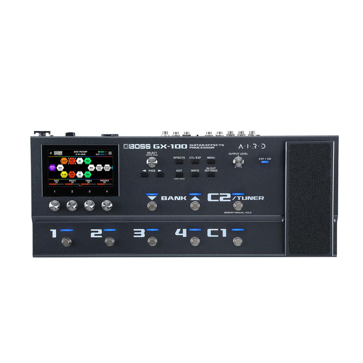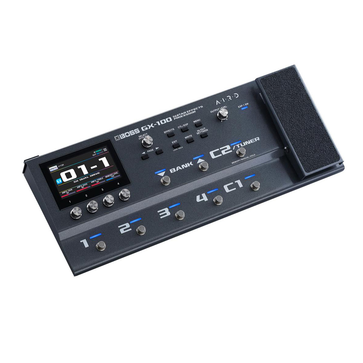Fusing advanced BOSS tone technologies into a sleek, ultra-modern hardware design, the inspiring GX-100 delivers top-level performance everywhere you play. Explore 32 AIRD amplifiers and over 170 effects effects derived from the flagship GT-1000, and craft great sounds in seconds with the intuitive color touch display. Up to 15 simultaneous effect blocks provide unlimited tone possibilities, coupled with deep real-time command via onboard footswitches, an expression pedal, and external control support.