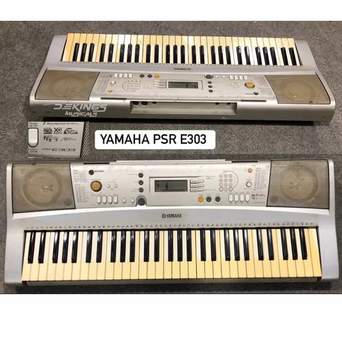 The used PSR E303 Yamaha keyboard is a 61-key portable keyboard built for beginners and home musicians. It combines Yamaha’s quality sound engine with educational features to make learning fun and interactive.