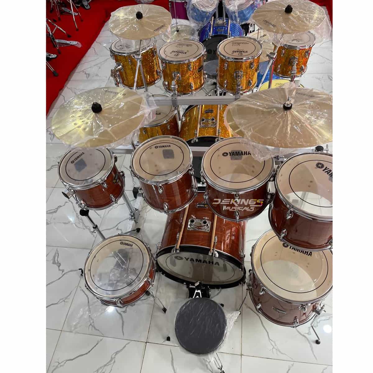 The Yamaha 7-Piece Drum Set is a dynamic, full-scale kit built for serious drummers who crave versatility, power, and precision. Featuring four hanging toms mounted on a long hanging rod, a solid floor tom, snare, and bass drum – this set delivers a broad tonal range that fits every genre from gospel to rock. It comes complete with full hardware and a hi-hat plus two additional cymbals, making it stage-ready straight out of the box. Crafted with Japanese reliability and a sleek professional finish, it’s perfect for churches, studios, and live performances.